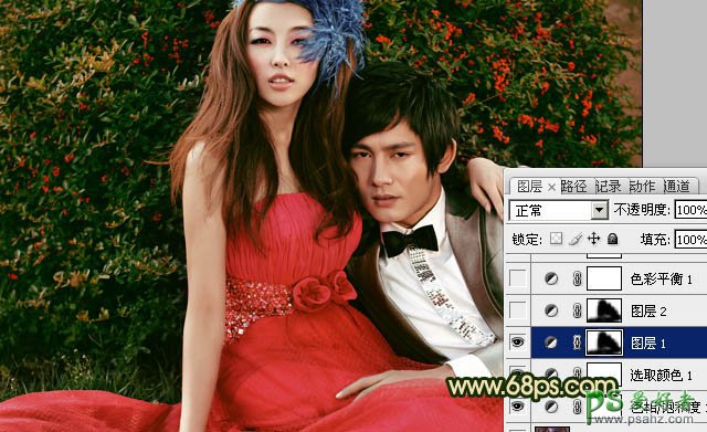 3、按Ctrl + J 把当前可选颜色调整图层复制一层,用黑色画笔把人物部分擦出来,效果如下图。