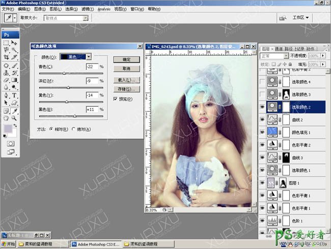 12、用“可选颜色”对黑色进行适当的调整,这样黑光就不会有太重的感觉。