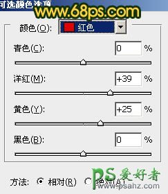 7、创建可选颜色调整图层,对红,青进行调整,参数设置如图20,21,效果如图22。这一步调整暖色与冷色的对比,增强画面的阳光色彩。