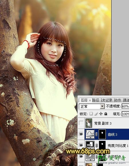 13、用套索工具勾出人物脸部,按Ctrl + Alt + D 羽化3个像素后创建曲线调整图层,稍微调亮一点,再增加对比度等,效果如下图。