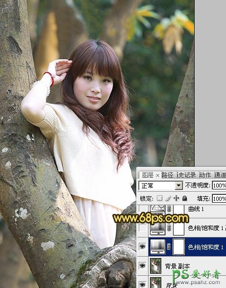 PS调色教程:给树林间可爱的少女写真照调出红调个性色彩