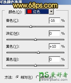 7、再创建可选颜色调整图层,对红,白进行调整,参数设置如图15,16。这一步加强红色及高光部分的颜色。