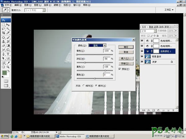 PS调色教程:给漂亮的影楼美女照调出个性青色调