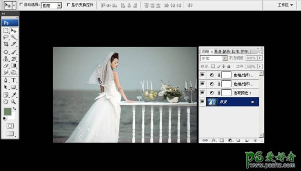 PS调色教程:给漂亮的影楼美女照调出个性青色调