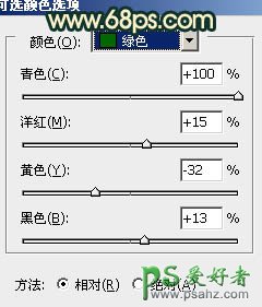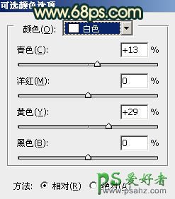 > 1、打开原图素材,创建可选颜色调整图层,对黄、绿、白、中性、黑色进行调整,参数设置如图1 - 5,效果如图6。这一步调整背景及头发部分的颜色。>
