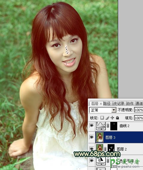 5、新建一个图层,盖印图层。用减淡工具把人物脸部的高光部分稍微涂亮一点,如下图。>
