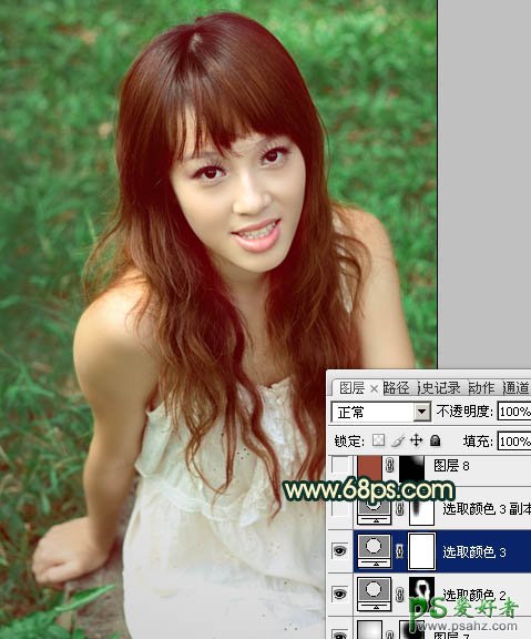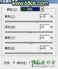 10、创建可选颜色调整图层,对绿色进行调整,参数设置如图20,效果如图21。这一步把背景绿色稍微调暗。>