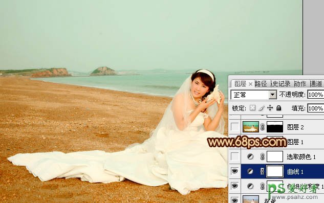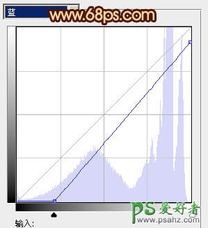 2、创建曲线调整图层,对蓝色进行调整,参数设置如图4,效果如图5。这一步给画面增加暖色。