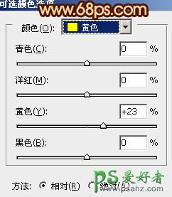 3、创建可选颜色调整图层,对黄、绿、青、白、中性色进行调整,参数设置如图6 - 10,效果如图11。这一步加强背景的青色及沙滩的金黄色。