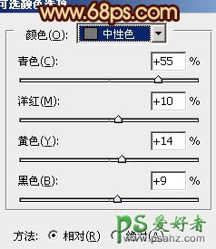 4、按Ctrl + J 把当前可选颜色调整图层复制一层,不透明度改为:30%,用黑色画笔把中间部分擦出来,效果如下图。