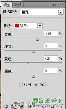 2、选择“图像-调整-可选颜色”分别调整:红、黄、白、中性色、黑色,让画面整体色调成金黄色。