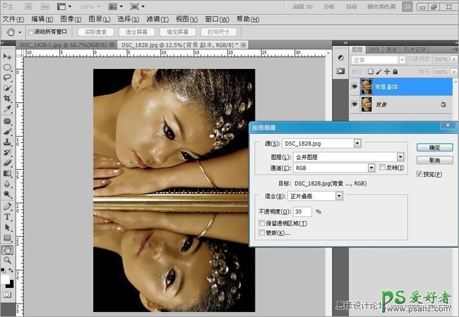 4、复制图层选择“图像-应用图像”调整里面参数让人物肤色对比强烈的质感。