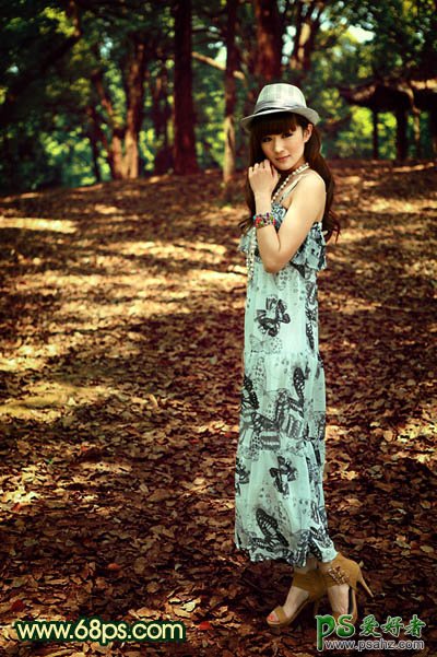 11、给抠出的人物稍微调整一下颜色,跟背景融合即可。