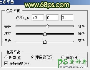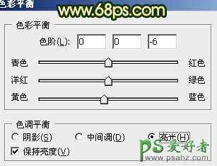 2、创建色彩平衡调整图层,对中间调及高光调整,参数设置如图6,7,效果如图8。这一步增加图片的黄色及青色。