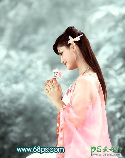 13、新建一个图层盖印图层。用模糊工具把背景部分需要模糊的部分模糊处理,局部需要调亮的部分用减淡工具调亮,大致效果如下图。