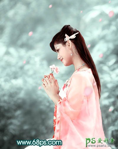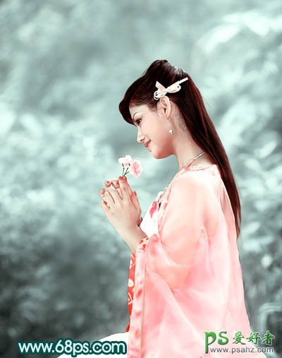 PS调色教程:给古装漂亮少女图片调出淡青艺术效果