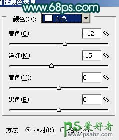 8、创建可选颜色调整图层,对青,白进行调整,参数设置如图12,13,确定后用黑色画笔把人物部分擦出来,效果如图14。这一步简单调整背景部分颜色。