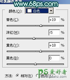 12、创建可选颜色调整图层,对红色,白色进行调整,参数设置如图19,20,确定后把图层不透明度改为:30%,效果如图21。