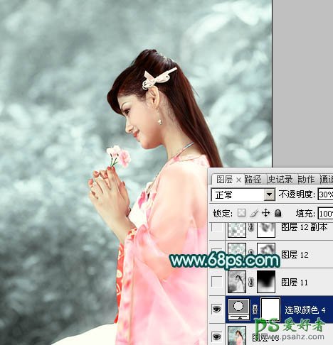 PS调色教程:给古装漂亮少女图片调出淡青艺术效果