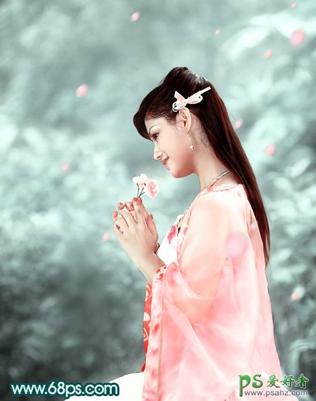 PS美女照片后期调色教程,PS调色教程:给古装漂亮少女图片调出淡青艺术效果,素材图片拍摄的精度不是很高,背景及人物部分有较多的杂点。处理之前需要对人物及背景进行降噪处理。主色最好选用较为古典的颜色,这样可更好衬托人物古装,突出主题。