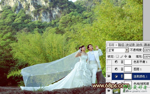 photoshop调出粉嫩的黄绿色情侣婚纱写真照