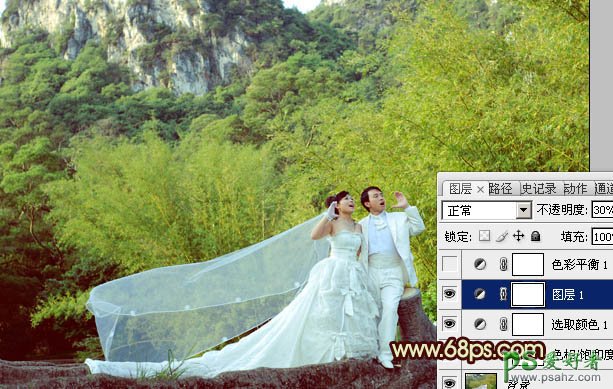 3、按Ctrl + J 把当前可选颜色调整图层复制一层,不透明度改为:30%,效果如下图。