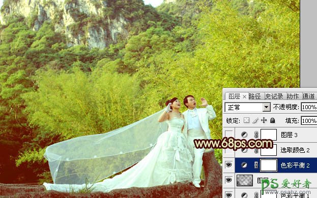 photoshop调出粉嫩的黄绿色情侣婚纱写真照