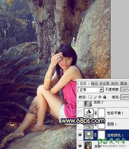 PS调色教程:给公园里的美腿玉足少女图片调出性感的蓝黄色