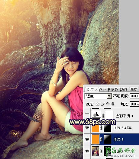 9、新建一个图层,填充橙黄色:#FB951B,混合模式改为“滤色”,按住Alt键添加图层蒙版,用白色画笔把左上角部分擦出来,效果如下图。