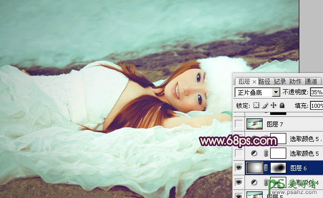 8、新建一个图层,用黑白径向渐变拉出白色至黑色径向渐变。确定后把图层混合模式改为“正片叠底”,不透明度改为:35%,加上图层蒙版,用黑色画笔把中间部分擦出来,效果如下图。