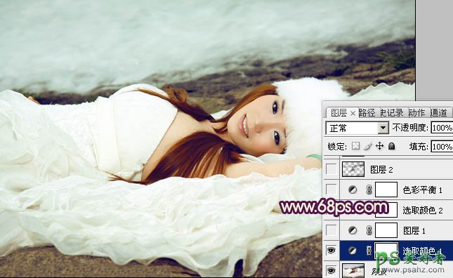 photoshop调出淡青色外景甜美女孩儿婚纱艺术照教程