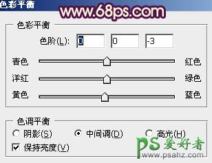 4、创建色彩平衡调整图层,对阴影、中间调、高光进行调整,参数设置如图13 - 15,确定后把图层不透明度改为:50%,效果如图16。