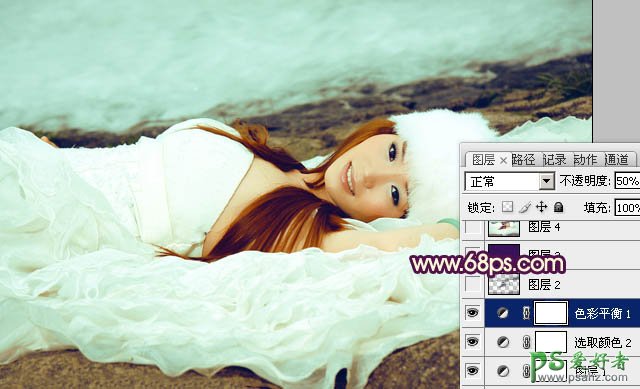 photoshop调出淡青色外景甜美女孩儿婚纱艺术照教程