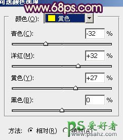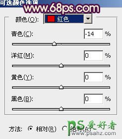 7、创建可选颜色调整图层,对红、黄、白色进行调整,参数设置如图19 - 21,效果如图22。这一步把人物肤色调红润。