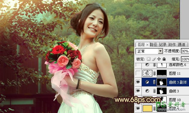 15、用曲线调整图层把人物衣服部分的颜色稍微调暗一点,大致效果如下图。