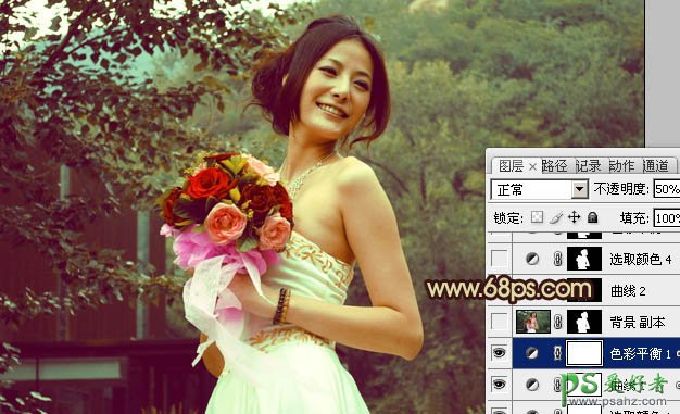 photoshop调出流行色彩美女外景婚纱艺术照教程