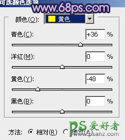 1、打开原图素材,创建可选颜色调整图层,对黄、绿、白、中性色进行调整,参数设置如图1 - 4,效果如图5。这一步把背景主色黄绿色转为青绿色。