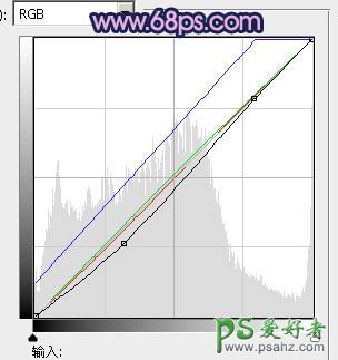 3、创建曲线调整图层,主要对RGB及蓝色进行调整,参数设置如图11,红色及绿色可以微调一下也可以省略。大致效果如图12。这一步给画面增加蓝色。