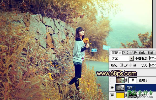 ps人像调色教程:给马路边漂亮MM写真照调出橙黄的秋季色
