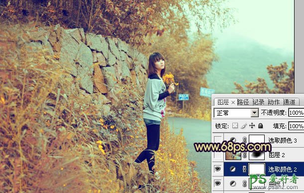 PS调色教程:给影楼婚片少女调出漂亮的黄青色