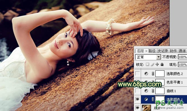 PS调色教程:给影楼婚片少女调出漂亮的黄青色