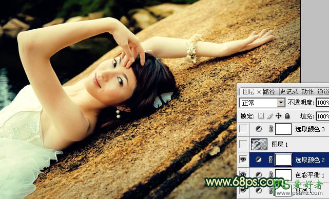 PS调色教程:给影楼婚片少女调出漂亮的黄青色