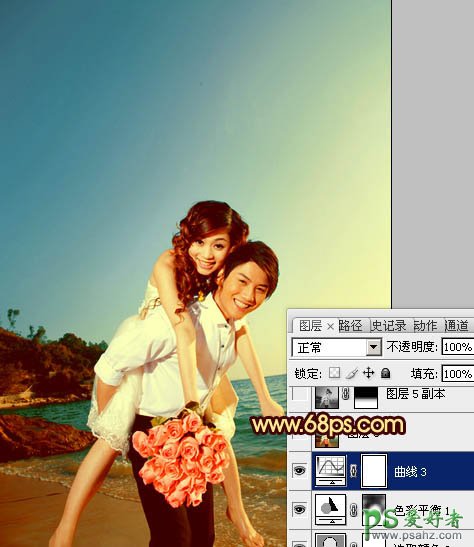 photoshop给一对浪漫的爱侣婚片调出漂亮的霞光色