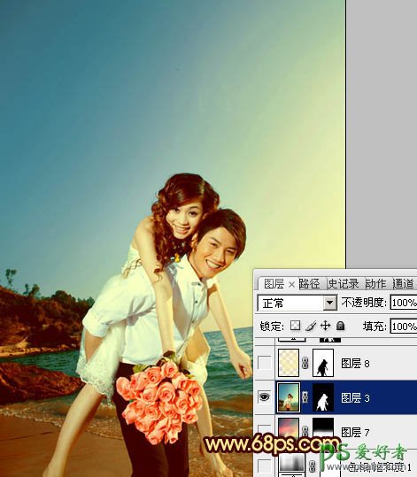 7、把之前盖印的“人物”图层置顶,按住Alt键添加图层蒙版,用白色画笔把人物部分擦出来,效果如下图。