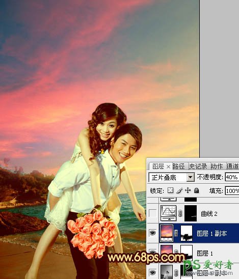 photoshop给一对浪漫的爱侣婚片调出漂亮的霞光色