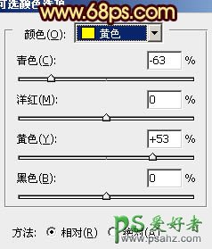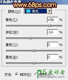 2、创建可选颜色调整图层,对红、黄、青、蓝、白、中性色、黑色进行调整,参数设置如图3 - 9,效果如图10。这一步给画面增加橙黄色和青色加强霞光的感觉。