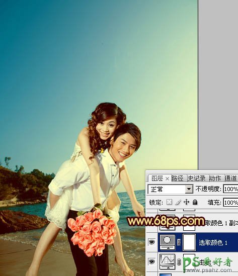 photoshop给一对浪漫的爱侣婚片调出漂亮的霞光色