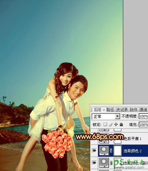 photoshop给一对浪漫的爱侣婚片调出漂亮的霞光色
