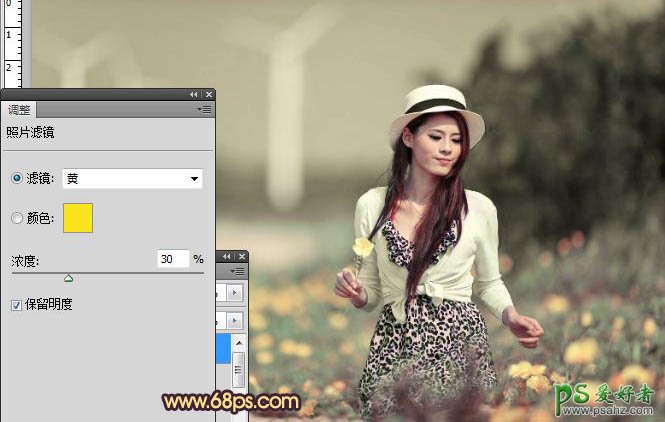 PS调色教程:给美丽的田野美女图片调出漂亮的暖褐色