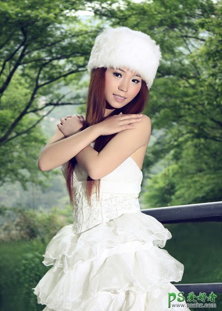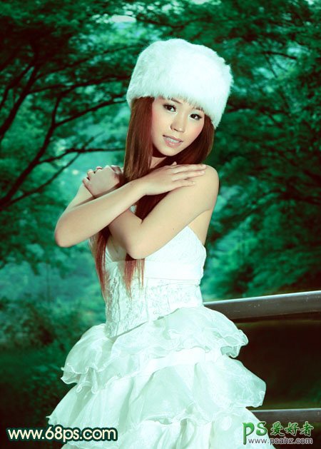 PS美女婚片调色教程实例,photoshop给漂亮女生婚纱照调出暗青流行色彩,背景稍暗的图片可以更好的突出人物部分。具体图片调色的时候,可以根据背景颜色构成选择好主色,然后对图片进行调色及压暗处理。人物部分可以单独润色,总体看上去突出有层次感即可。